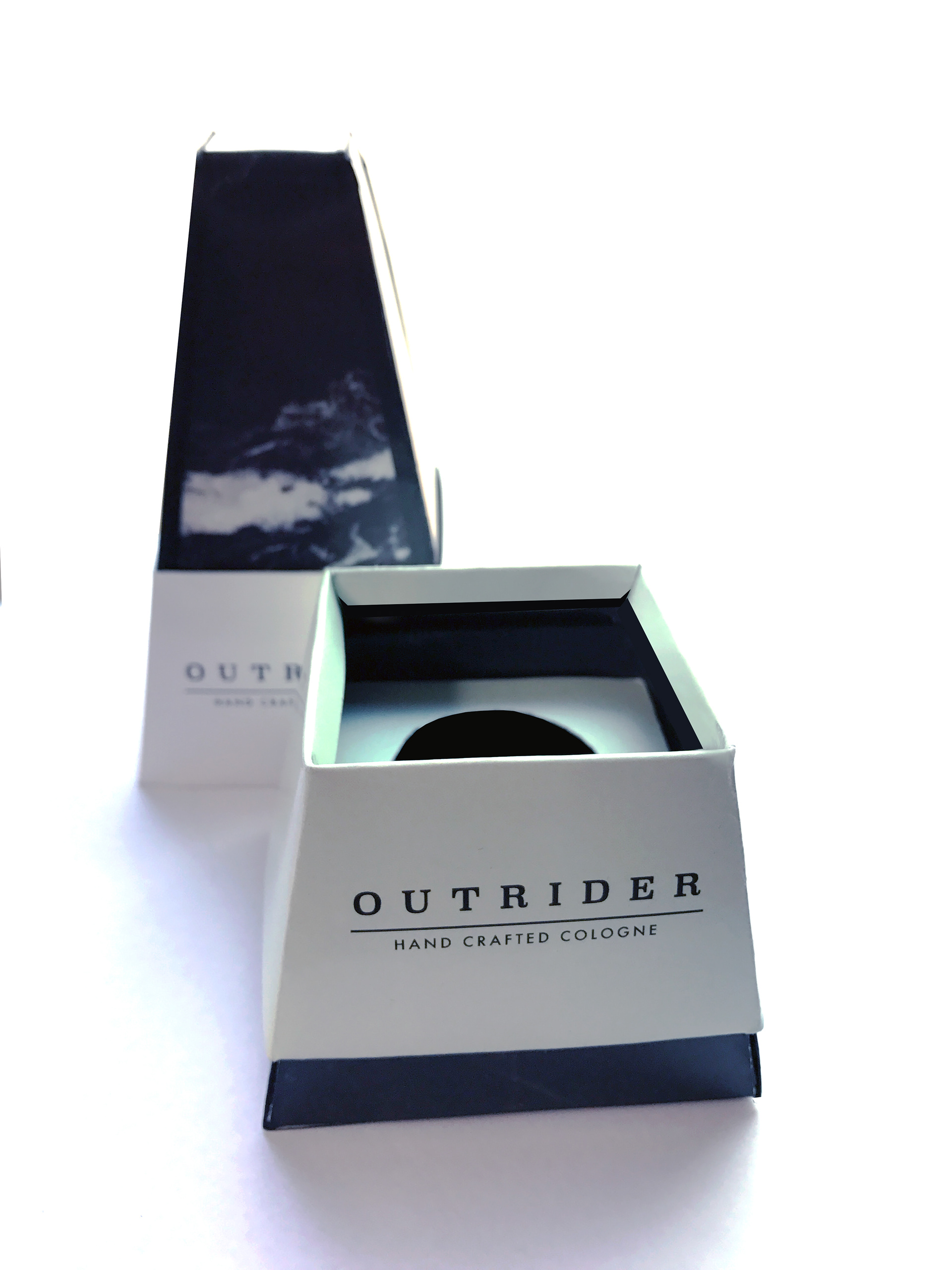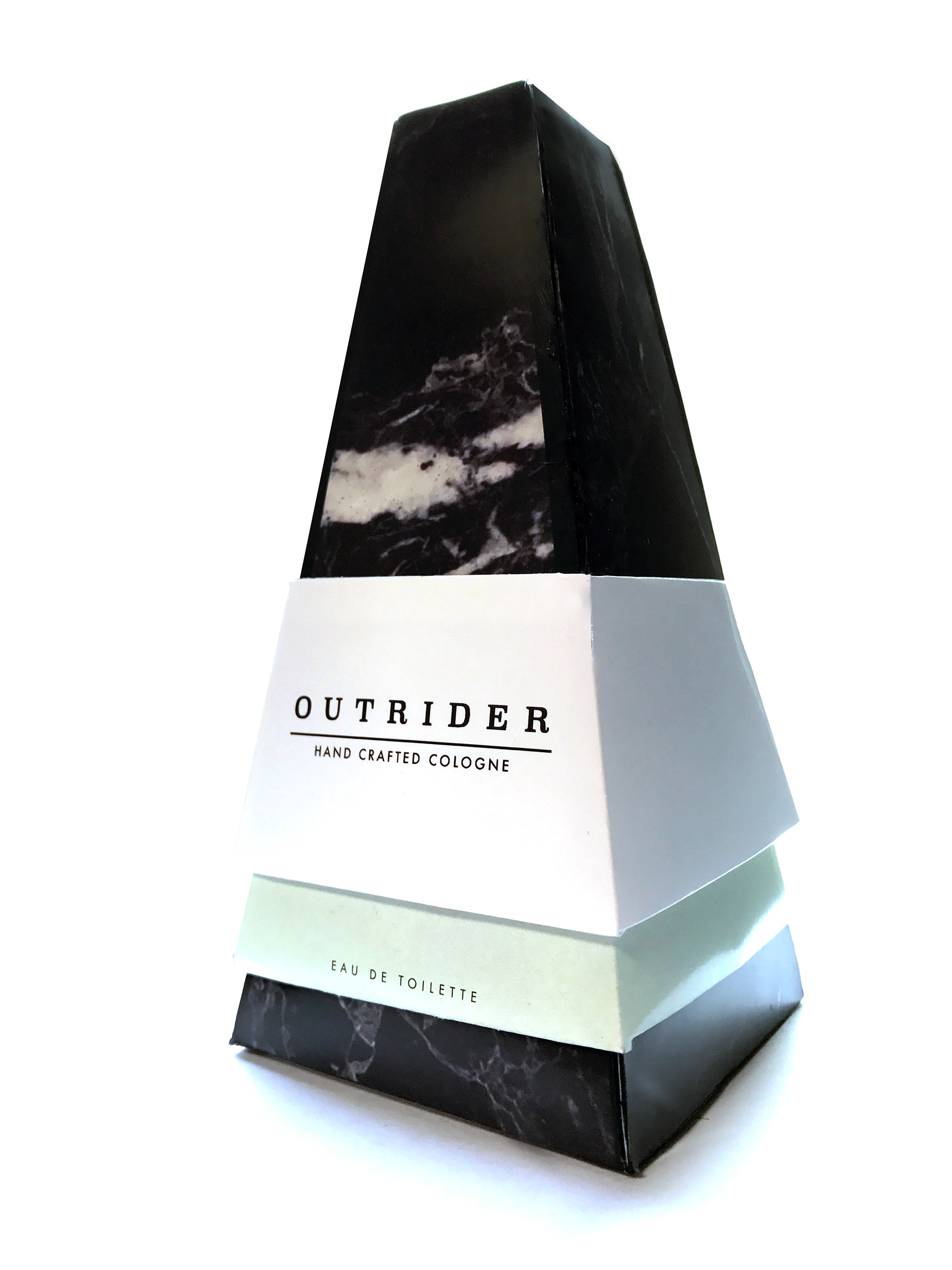 Student Project to Design packaging for a Mens grooming product. Outrider cologne is one piece of a series of fragrances for men.
